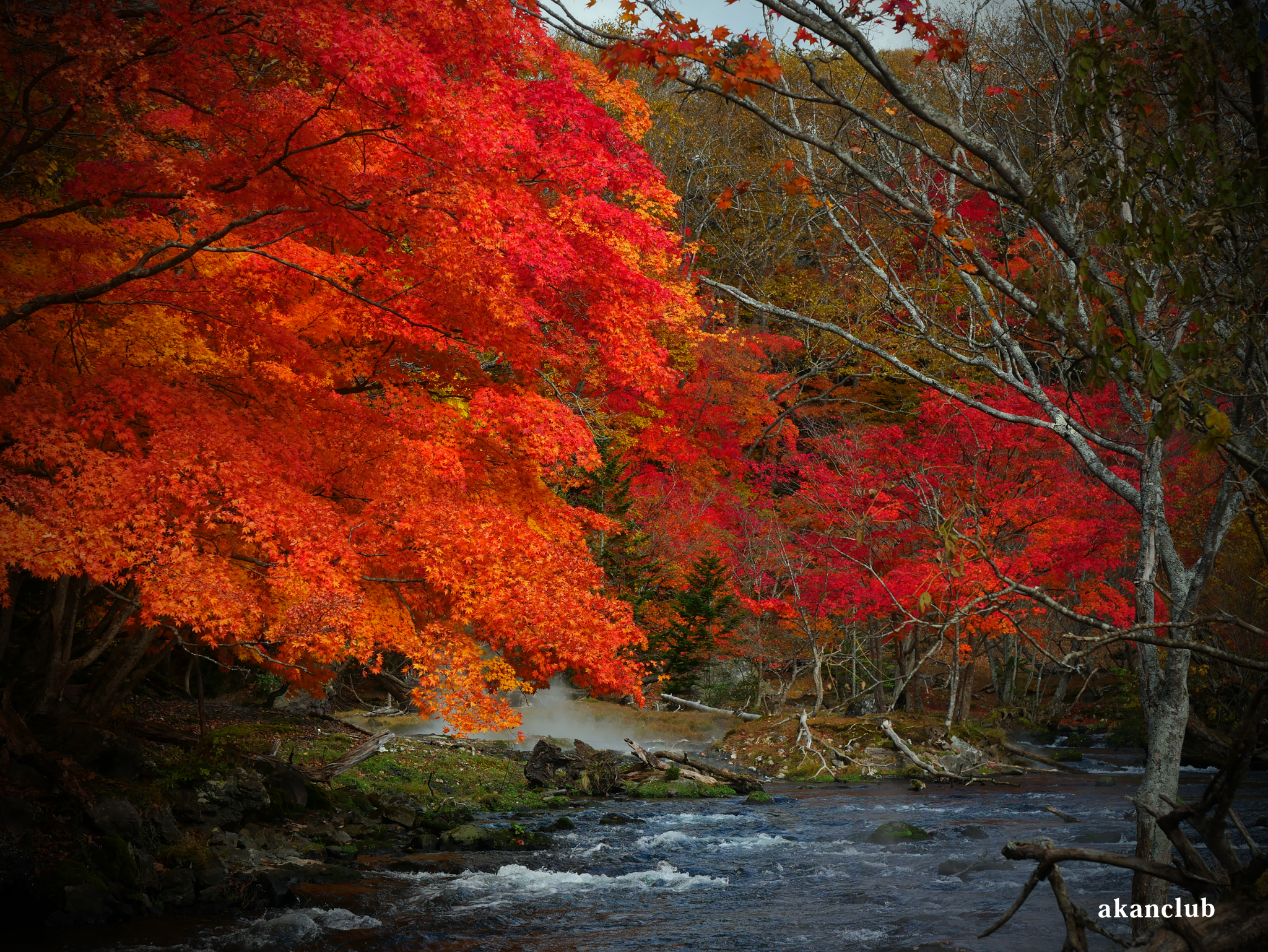 紅葉の阿寒川・・ラストby hige-akanclubに フライフィッシング、阿寒川、阿寒湖温泉on 投稿日: 2025年10月23日阿寒川のフライフィッシングは今月いっぱいです。川には枯れ葉が流れて川底やよどみにも少し溜まるようになってきました。20日阿寒川に到着してとりあえずカメラとロッドをもって上流へ向かいました。黄色い葉が少なくなってモミジの赤が目立つようになってきました。木々の隙間も広くなってきましたがやっぱり阿寒川は美しいです。今回は沢山映した中で気に入ったものを解像度を少し上げてアップしました。(いつもの解像度のものもあります・・)