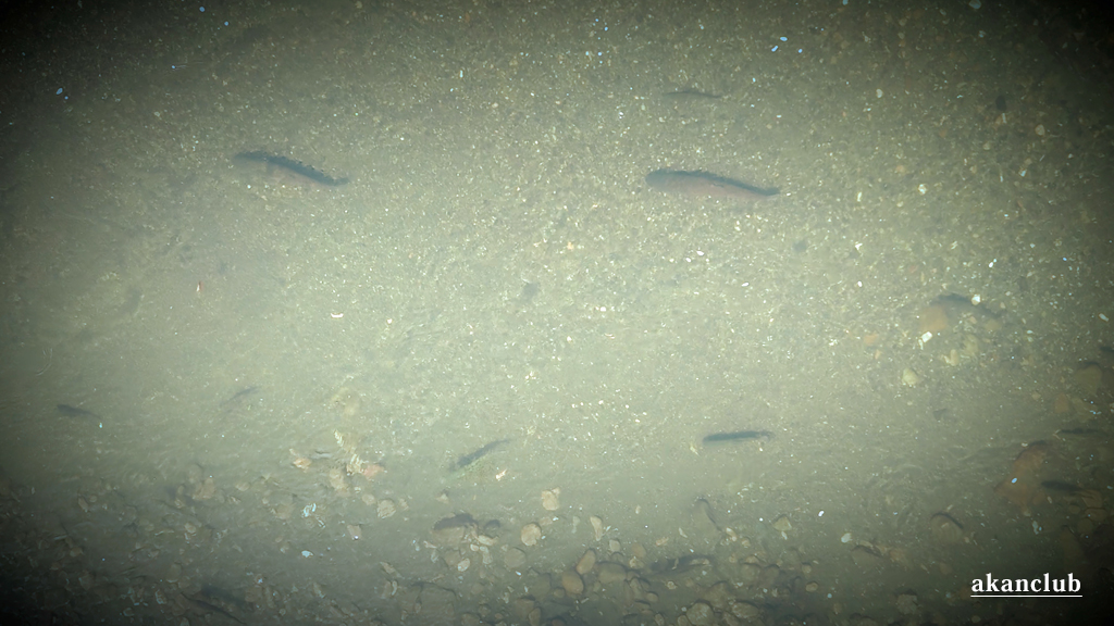 底にへばりついている阿寒川の虹鱒みたいじゃないの?