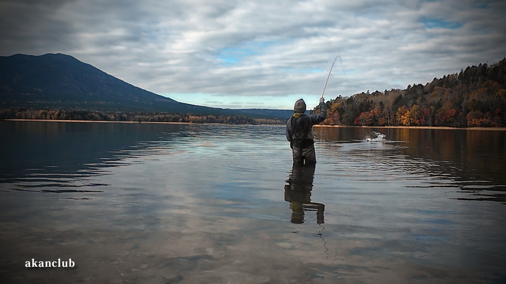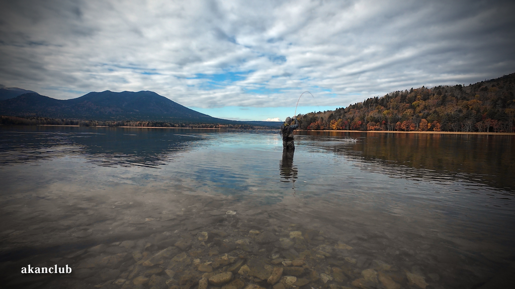 雄阿寒、雌阿寒、 島の撮影が終わってバッテリーもあるのでチャミングして鱒の様子を探るべくホバリング。
