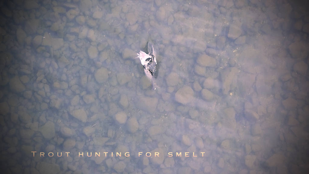 しばし浮かんでいたワカサギに大きな鱒がライズしました・・いるんだ。
