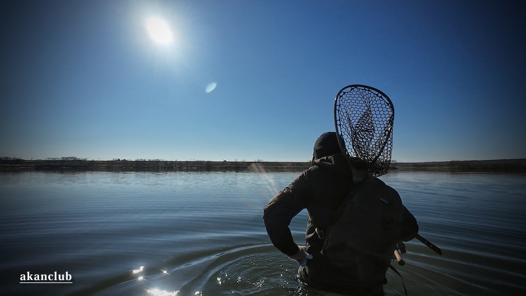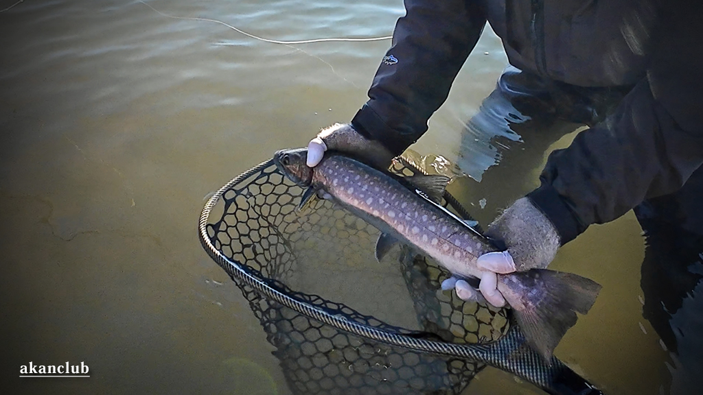 産卵から戻った大型アメマスは十勝川の下流で越冬します。